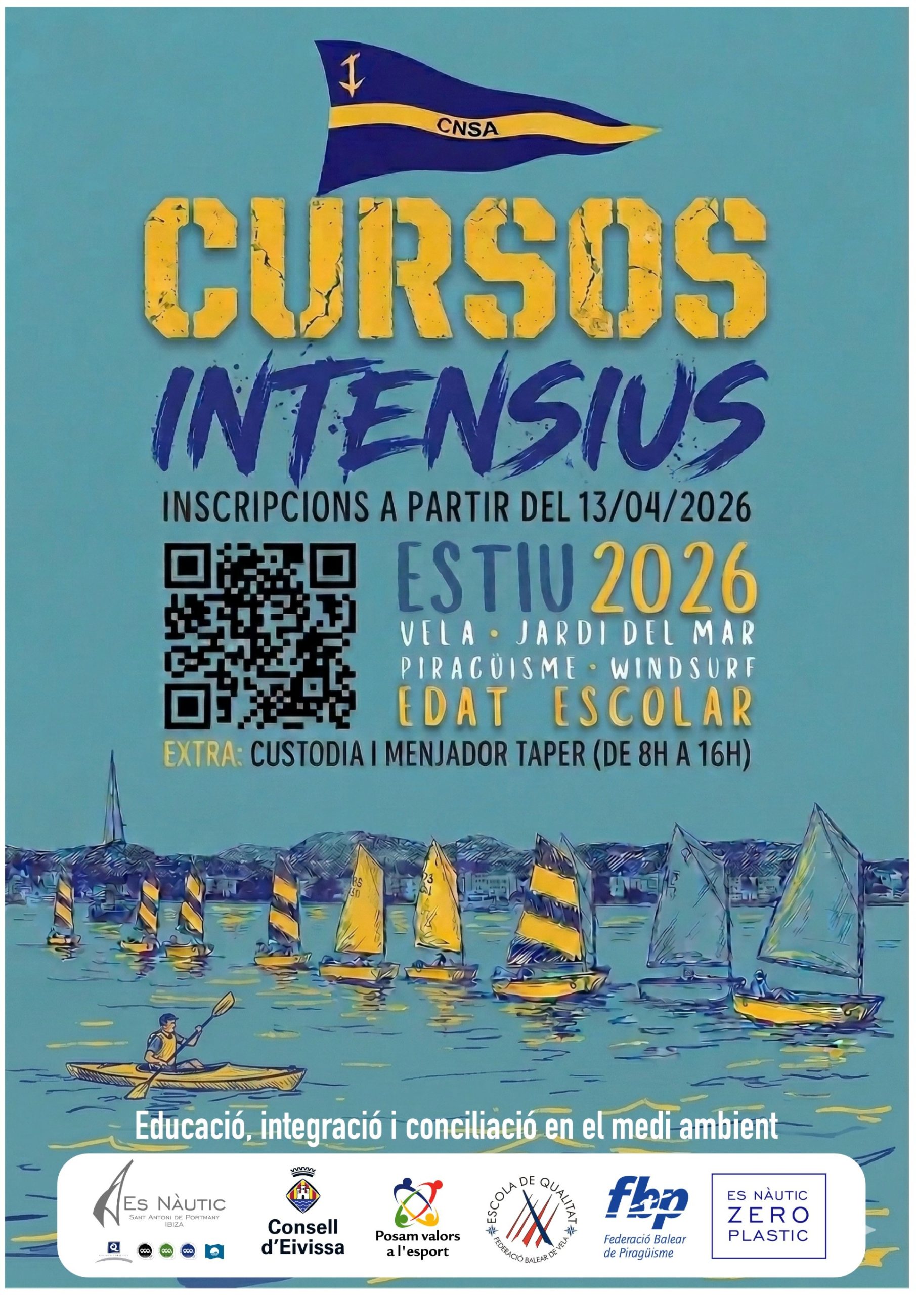 El próximo lunes, 13 de abril, se abre para el público en general el plazo de inscripciones para los Cursos de Verano 2026 del Club Nàutic Sant Antoni. En esta edición, la promoción de los deportes de la vela y el piragüismo, junto con la educación, la integración y la conciliación con el medio ambiente, conforman los ejes de esta actividad formativa, que todos los años suele cubrir por completo las plazas. Los socios del CNSA cuentan con una semana de ventaja y pueden realizar el trámite desde ayer, lunes.