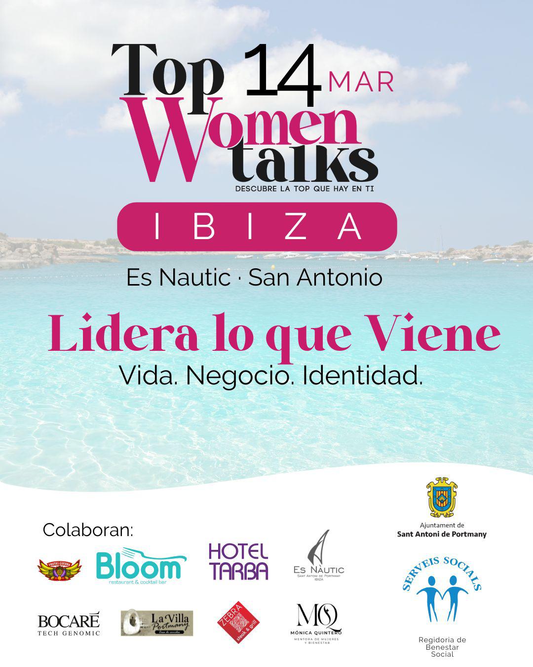 Top Women Talks, según la organización, no es un evento para escuchar desde la butaca, sino un espacio para ajustar, ordenar y tomar decisiones conscientes sobre la vida y el proyecto de las mujeres participantes. Las inscripciones y el abono de la entrada pueden realizarse a través de esta web. El evento cuenta con la colaboración del Ayuntamiento de Sant Antoni y Es Nàutic, entre otras entidades y empresas.
