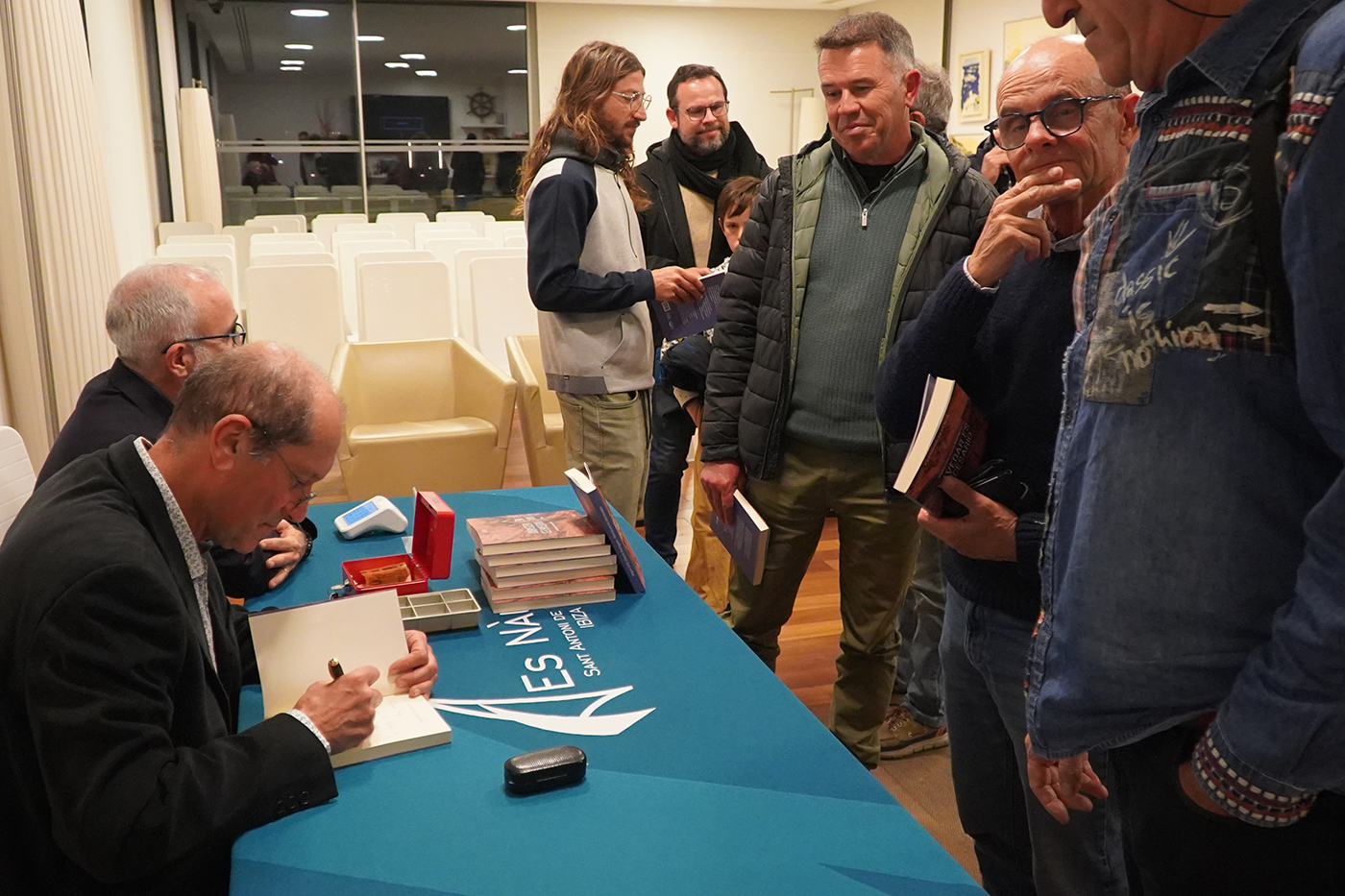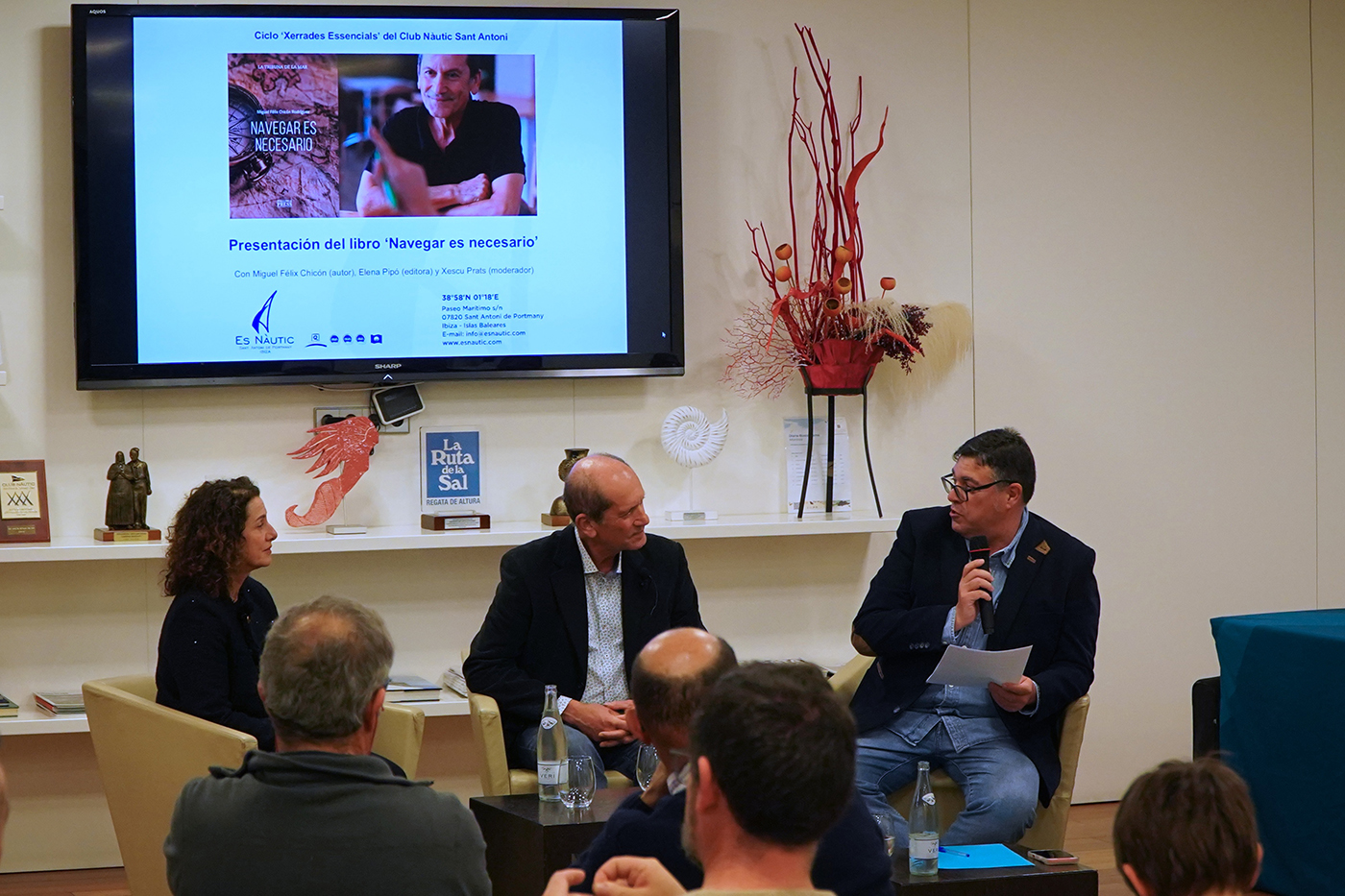 El pasado viernes se celebró en el salón social del Club Nàutic Sant Antoni la presentación en Ibiza del libro ‘Navegar es necesario’, escrito Miguel Félix Chicón, jefe del Centro de Coordinación de Salvamento Marítimo en Balears durante 26 años. El acto se enmarcó en el ciclo ‘Xerrades Essencials’ y contó con la participación del autor y también de la editora y directora de Mallorca Press, Elena Pipó, ocupándose de conducir el evento el periodista Xescu Prats.