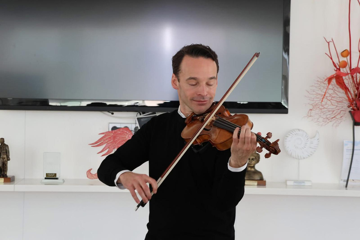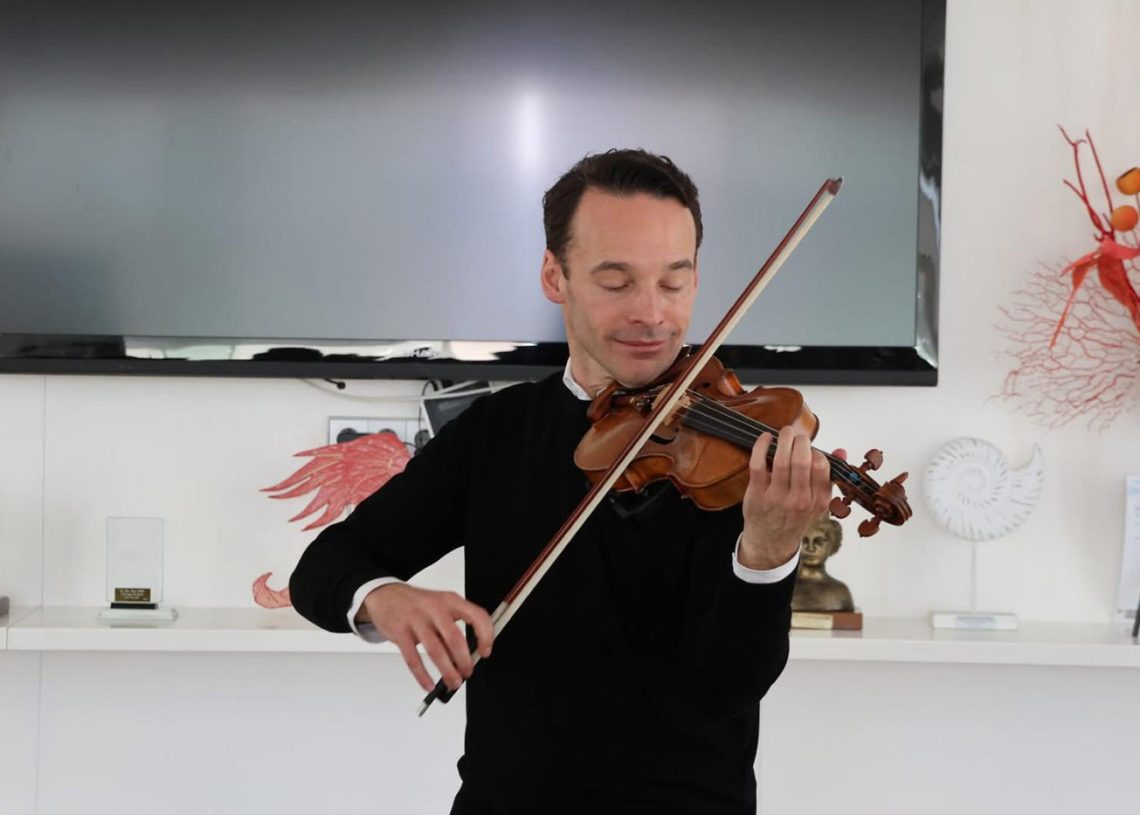 Ayer se celebró en el salón social del Club Nàutic Sant Antoni una sesión especial de musicoterapia, a cargo del prestigioso violinista alemán Linus Roth. El evento organizado por la psicoterapeuta Emma Torres, con la colaboración del Ayuntamiento de Sant Antoni y Es Nàutic, estuvo dirigido a asociaciones de la isla que trabajan en el ámbito de la salud mental y la inserción laboral, como Amadiba, la Fundació Deixalles y Apfem. Asistieron, asimismo, distintos usuarios del Aula de Terapia de Sant Antoni.