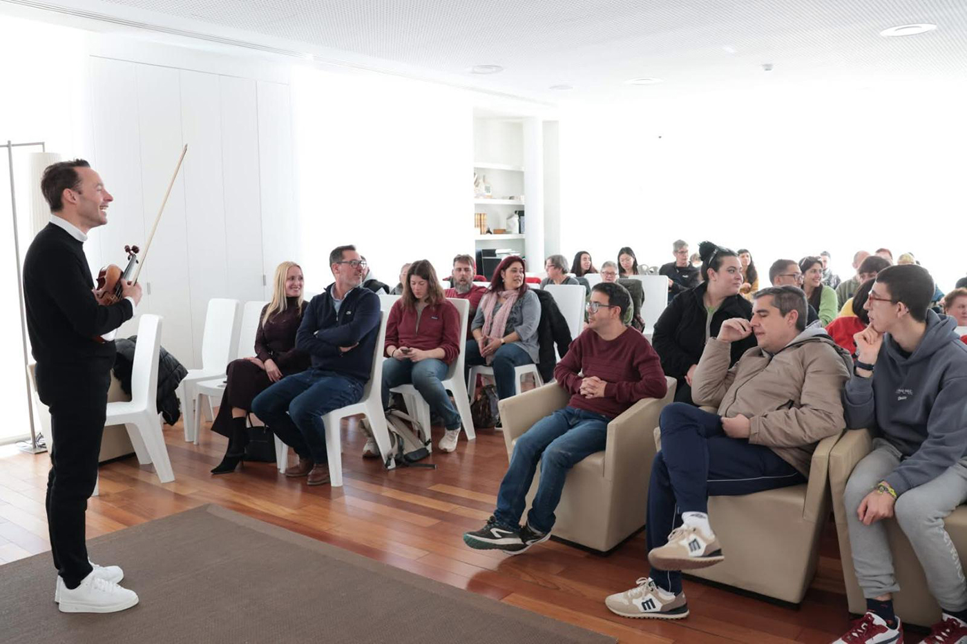 Linus acudió a esta sesión con un violín Stradivarius de más de 300 años de antigüedad, lo que enseguida despertó la admiración de las 60 personas que disfrutaron de su maestría con el arco. Entre el repertorio elegido para la ocasión, piezas de Vivaldi, Paganini y Bach, que el artista interpretó con la idea de que la música tiene que ser para todos, incluidas las personas con discapacidad o en situación de exclusión social, que normalmente no tienen la oportunidad de asistir a conciertos de música clásica.